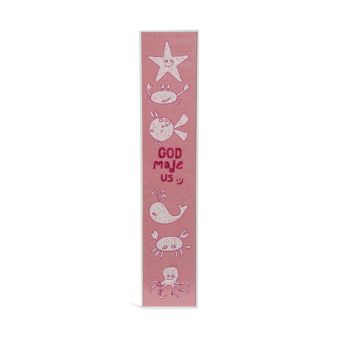This whimsical vertical wall piece brings an enchanting underwater world to life, featuring playful sea creature motifs crafted from virgin fabric and waste ends. Hand-appliquéd with intricate details, it tells a captivating story that sparks imagination. Ideal for a girl’s room, this piece pairs beautifully with soft pastel tones or calming neutrals like mint green or blush pink, which complement the gentle aquatic theme. Its sustainable craftsmanship makes it a thoughtful, eco-friendly choice while adding a touch of creativity and warmth to the space. A perfect blend of art and design, this wall hanging infuses any room with personality and playful charm.